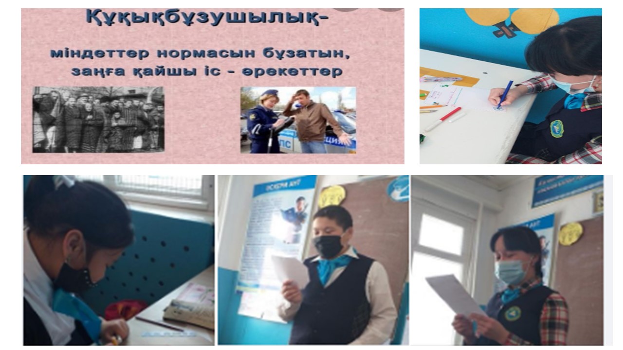 Наурыздың 17-і күні 7-сыныпта "Құқық бұзушылықтың алдын алу. Біз бәріміз теңбіз" тақырыбында тренинг өтті. Мақсаты: Оқушылардың құқық бұзушылығын алдын алу, құқықтық тәрбиесін арттыру.