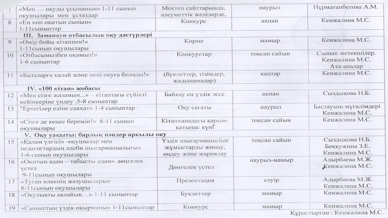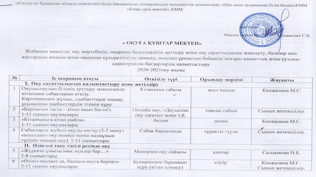 Кітапхана жұмысының 2025-2026 оқу жылына арналған жұмыс жоспары