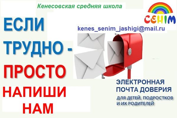 - Напишите на наш электронный адрес kenes_senim_jashigi@mail.ru ту ситуацию ктотрая вас беспокоит.